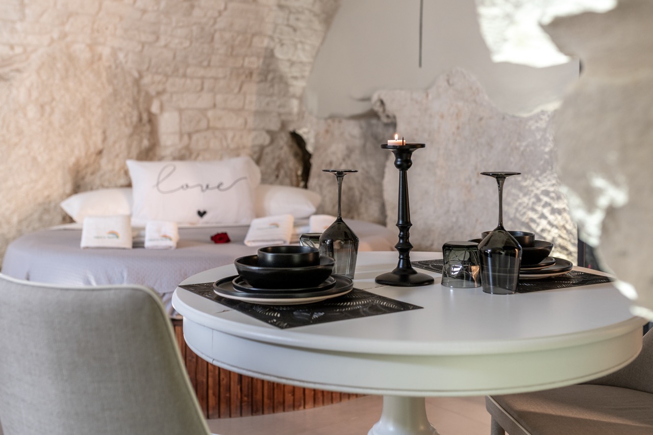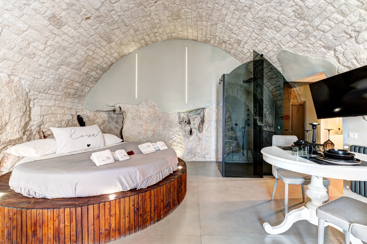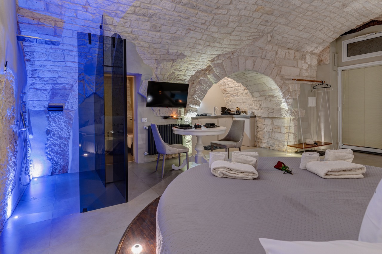 MALOLÚ LUXURY SUITE è una tipica dimora ostunese, completamente ricavata dalla pietra, situata nei pressi della piazza centrale.